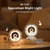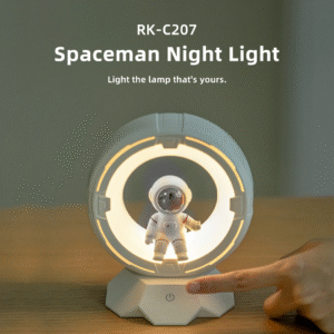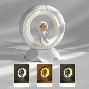 - It features a charming spaceman figure within a circular light ring.